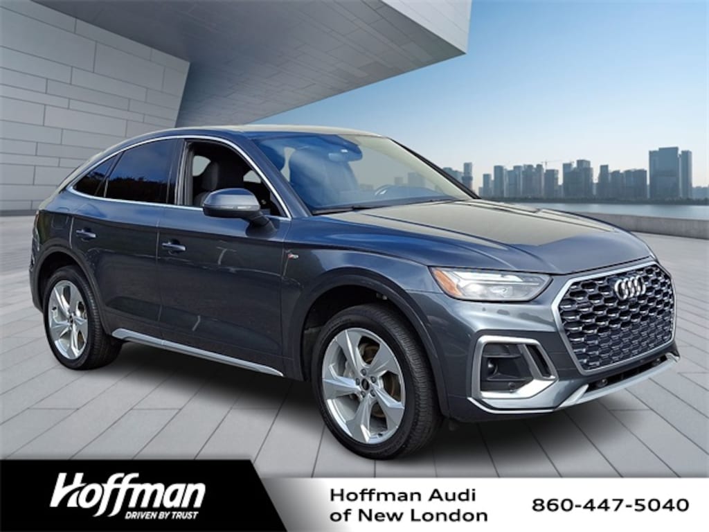 Certified. Daytona Gray Pearl Effect 2024 Audi Q5 Sportback 45 S line Premium Plus quattro quattro 7-Speed Automatic S tronic 2.0L Turbocharged RECENT HOFFMAN TRADE, CLEAN CAR FAX...NO ACCIDENTS, AUDI CERTIFIED, SERVICE RECORDS AVAILABLE, ONE OWNER, SUNROOF MOONROOF, REMAINDER OF FACTORY WARRANTY, 6 MONTH OR 6,000 POWERTRAIN WARRANTY, ABS brakes, Alloy wheels, Audi Advanced Key, Audi Virtual Cockpit Plus, Auto-Dimming Power Folding Exterior Mirrors, Bang & Olufsen Sound System w/3D Sound, Compass, Convenience Package, Driver Seat Memory, Electronic Stability Control, Front dual zone A/C, Heated door mirrors, Heated front seats, Illuminated entry, Leatherette Covered Center Console & Door Armrests, Low tire pressure warning, Manual Rear Side Window Shades, Power Adjustable Steering Column, Power Liftgate, Premium Plus Package, Remote keyless entry, SiriusXM w/360L, Top View Camera System, Traction control, Ventilated Front Sport Seats, Warm Weather Package.