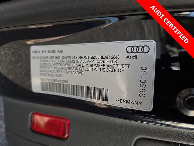 Certified. Black 2025 Audi A5 Sportback 45 S line Premium Plus quattro quattro 7-Speed Automatic S tronic 2.0L 4-Cylinder TFSI RECENT HOFFMAN TRADE, AUDI CERTIFIED, SERVICE RECORDS AVAILABLE, ONE OWNER, SUNROOF MOONROOF, REMAINDER OF FACTORY WARRANTY, 6 MONTH OR 6,000 POWERTRAIN WARRANTY, Alarm System with Motion Sensor, Audi Advanced Key, Audi Connect NAV and PLUS, Audi MMI Navigation Plus, Audi Side Assist with Pre Sense Rear, Audi Virtual Cockpit Plus, Auto-Dimming Power Folding Exterior Mirrors, Bang & Olufsen Sound System with 3D Sound, Leatherette Covered Center Console and Door Armrests, LED Interior Lighting Plus Package, Memory For Driver's Seat, Premium Plus, SiriusXM with 360L, Top View Camera System, Traffic Sign Recognition, Wheels: 19" 5-Arm-Cutter Design Bi-Color Finish, Wireless Phone Charging Pad.