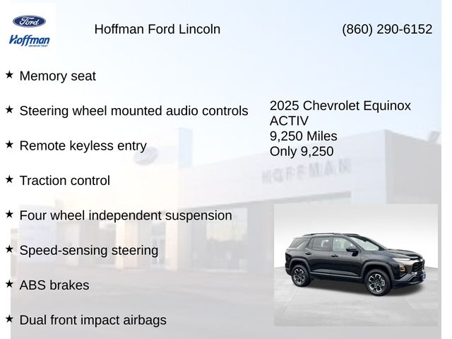 2025 Chevrolet Equinox ACTIV Certified. CARFAX One-Owner. Clean CARFAX. Priced below KBB Fair Purchase Price! Odometer is 2594 miles below market average! 26/28 City/Highway MPG