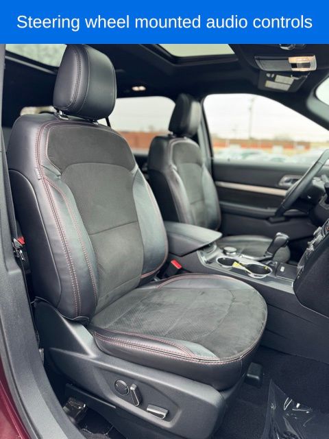 *Sunroof*, *Heated Seats*, *3rd Row*, *One Owner*, Explorer XLT, 3.5L V6 Ti-VCT, Burgundy Velvet Metallic Tinted Clearcoat, 2 Driver Configurable 4.2" Color LCD Displays, 3rd row seats: split-bench, 4-Wheel Disc Brakes, 6 Speakers, ABS brakes, Adaptive Cruise Control & Fwd Collision Warning, Air Conditioning, AM/FM radio: SiriusXM, AM/FM Stereo, Auto High-Beam Headlights, Auto-Dimming Rear-View Mirror, Black Roof Rack Side Rails, BLIS Blind Spot Information System, Brake assist, Class III Trailer Tow Package, Comfort Package, Compass, Delay-off headlights, Driver Connect Package, Driver door bin, Driver vanity mirror, Dual front impact airbags, Dual front side impact airbags, Dual-Zone Electronic Automatic Temperature Ctrl, Ebony Black Unique Door-Trim Panel Insert, Electronic Stability Control, Emergency communication system: 911 Assist, Equipment Group 202A, EXPLORER Badge on Hood, EXPLORER Unique Branded Front Floor Mats, Exterior Parking Camera Rear, Ford Safe & Smart Package, Forward Sensing System, Four wheel independent suspension, Front anti-roll bar, Front Bucket Seats, Front Center Armrest, Fully automatic headlights, Heated Steering Wheel, Knee airbag, Lane-Keeping System, Leather Heated Bucket Seats, Leather steering wheel, Leather-Trimmed Bucket Seats, LED Fog Lamps, Low tire pressure warning, Lower Bodyside Cladding Insert, Lower Door Trim, Lower Front & Rear Bumper Covers, Magnetic Met-Painted Grille Bars w/Mesh Insert, Occupant sensing airbag, Overhead airbag, Overhead console, Passenger door bin, Power & Heated Glass Sideview Mirrors, Power driver seat, Power Liftgate, Power passenger seat, Power steering, Power windows, Radio: AM/FM Stereo w/7 Speakers, Rain-Sensing Wipers (Front Only), Rear air conditioning, Rear anti-roll bar, Rear Bumper Step Pad, Rear Parking Sensors, Rear reading lights, Rear seat center armrest, Rear window defroster, Rear window wiper, Remote keyless entry, Remote Start System, Sideview Mirror Caps, Single-CD Player, Speed-sensing steering, Speed-Sensitive Wipers, Split folding rear seat, Steering wheel mounted audio controls, SYNC 3 Communications & Entertainment System, SYNC Communication & Entertainment System, SYNC Connect, Tachometer, Telescoping steering wheel, Traction control, Trip computer, Twin Panel Moonroof, Universal Garage Door Opener (UGDO), Variably intermittent wipers, Voice-Activated Touchscreen Navigation System, Wheels: 20" x 8.5" Magnetic Met Painted 10-Spoke, XLT Appearance Package, XLT Technology Feature Bundle.