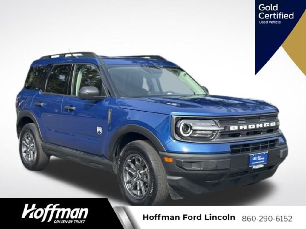 *Ford Certified*, *One Owner*, Bronco Sport Big Bend, Blue Metallic, 3.80 Axle Ratio, 4-Wheel Disc Brakes, 6 Speakers, ABS brakes, Air Conditioning, AM/FM radio: SiriusXM, AM/FM Stereo, Auto High-beam Headlights, Automatic temperature control, Brake assist, Compass, Delay-off headlights, Driver door bin, Driver vanity mirror, Dual front impact airbags, Dual front side impact airbags, Electronic Stability Control, Emergency communication system: SYNC 3 911 Assist, Four wheel independent suspension, Front anti-roll bar, Front Bucket Seats, Front Center Armrest, Front reading lights, Fully automatic headlights, Knee airbag, Low tire pressure warning, Occupant sensing airbag, Outside temperature display, Overhead airbag, Overhead console, Panic alarm, Passenger vanity mirror, Power steering, Power windows, Radio data system, Rear anti-roll bar, Rear reading lights, Rear seat center armrest, Rear window defroster, Rear window wiper, Remote keyless entry, SiriusXM, Speed-sensing steering, Speed-Sensitive Wipers, Split folding rear seat, Steering wheel mounted audio controls, SYNC 3 Communications & Entertainment System, Tachometer, Tilt steering wheel, Traction control, Trip computer, Unique Cloth Front Bucket Seats, Variably intermittent wipers, Wheels: 17" Carbonized Gray-Painted Aluminum.