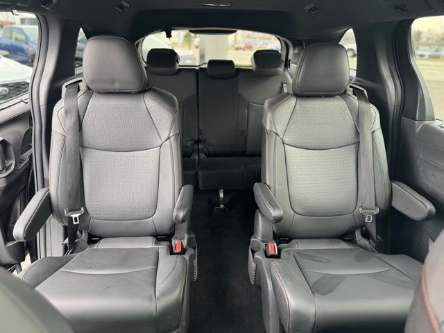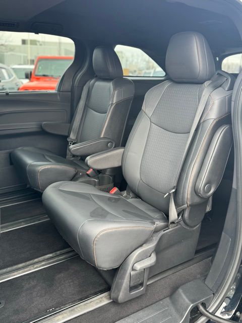 *3rd Row*, Sienna XSE 7 Passenger, Midnight Black Metallic, 18" Metallic Alloy Wheels, 3rd row seats: split-bench, 4-Wheel Disc Brakes, 8 Speakers, ABS brakes, Air Conditioning, AM/FM radio: SiriusXM, Apple CarPlay/Android Auto, Auto High-beam Headlights, Auto-dimming Rear-View mirror, Automatic temperature control, Brake assist, Bumpers: body-color, Compass, Delay-off headlights, Door auto-latch, Driver door bin, Driver vanity mirror, Driver's Seat Mounted Armrest, Dual front impact airbags, Dual front side impact airbags, Electronic Stability Control, Emergency communication system: Safety Connect with 3-year trial, Exterior Parking Camera Rear, Four wheel independent suspension, Front anti-roll bar, Front Bucket Seats, Front dual zone A/C, Front fog lights, Front Heated Bucket Seats, Front reading lights, Fully automatic headlights, Garage door transmitter: HomeLink, Heated door mirrors, Heated front seats, Illuminated entry, Knee airbag, Lane Departure Warning System, Leather Shift Knob, Leather steering wheel, Low tire pressure warning, Navigation System, Occupant sensing airbag, Outside temperature display, Overhead airbag, Overhead console, Passenger seat mounted armrest, Passenger vanity mirror, Power driver seat, Power Liftgate, Power moonroof, Power passenger seat, Power steering, Power windows, Radio data system, Radio: JBL Audio w/Navigation, Radio: Premium Audio w/Navigation, Rear air conditioning, Rear anti-roll bar, Rear dual zone A/C, Rear reading lights, Rear side impact airbag, Rear window defroster, Rear window wiper, Reclining 3rd row seat, Remote keyless entry, SofTex Seat Trim, Speed-sensing steering, Split folding rear seat, Steering wheel mounted audio controls, Tachometer, Telescoping steering wheel, Tilt steering wheel, Traction control, Trip computer, Variably intermittent wipers, Wireless Charger, XSE Plus Package.