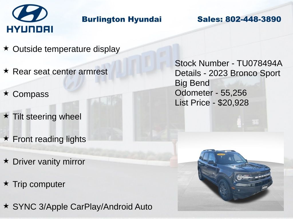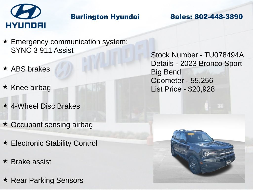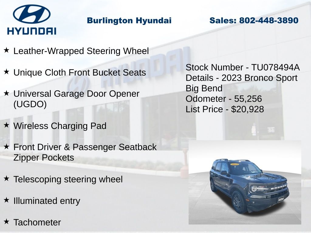 2023 Bronco Sport Big Bend 1.5L EcoBoost 4WD 25/28 City/Highway MPG Priced below KBB Fair Purchase Price! CARFAX One-Owner.