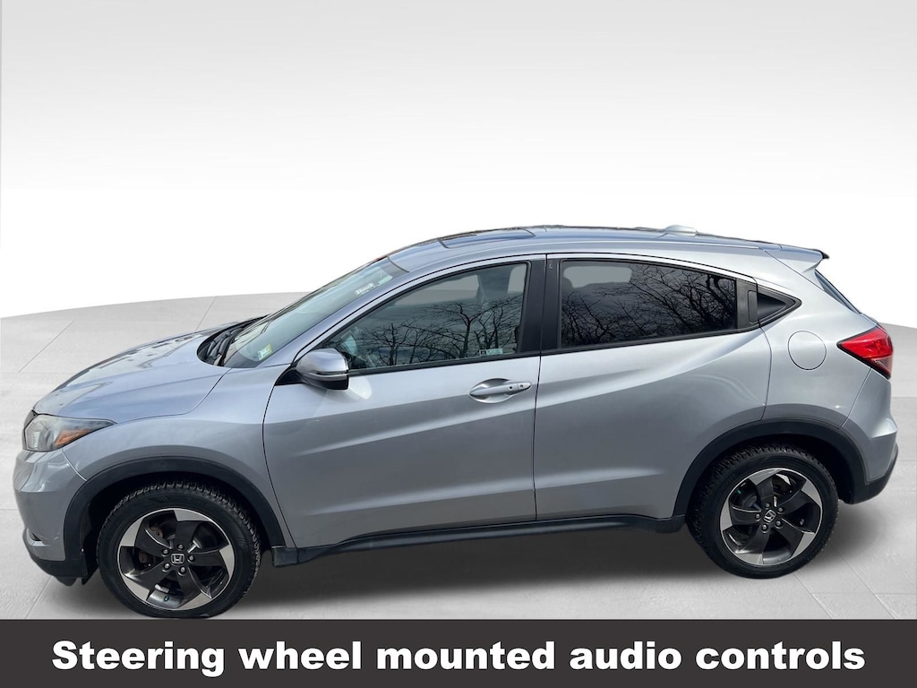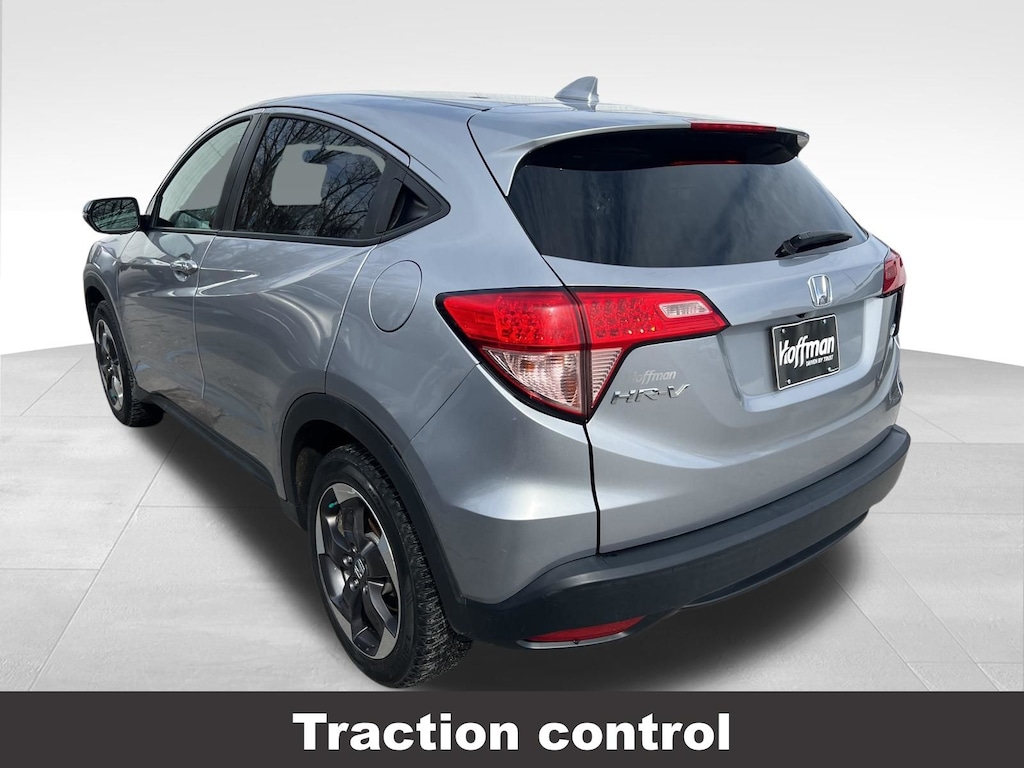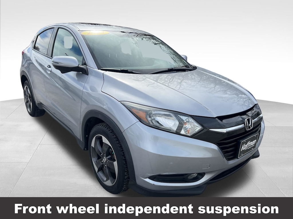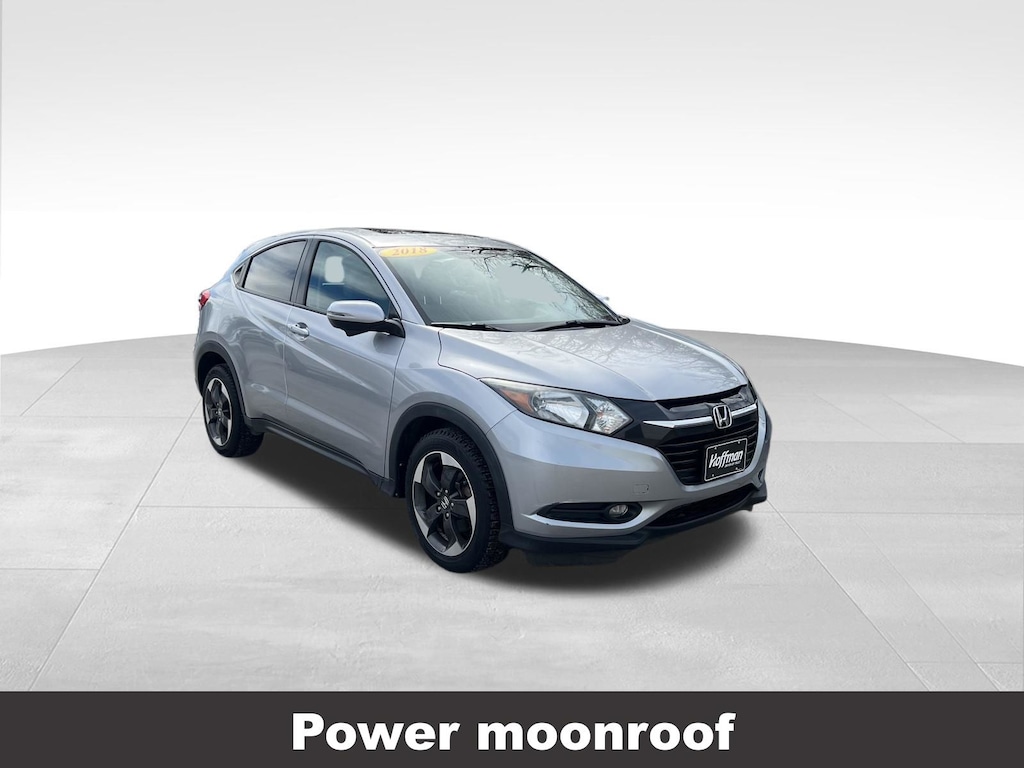 Clean CARFAX. Honda HR-V EX 2018 4-Wheel Disc Brakes, ABS brakes, Air Conditioning, Alloy wheels, Automatic temperature control, Brake assist, Driver vanity mirror, Dual front impact airbags, Dual front side impact airbags, Electronic Stability Control, Exterior Parking Camera Rear, Front fog lights, Front reading lights, Front wheel independent suspension, Fully automatic headlights, Heated door mirrors, Heated Front Bucket Seats, Illuminated entry, Low tire pressure warning, Occupant sensing airbag, Outside temperature display, Overhead airbag, Panic alarm, Passenger vanity mirror, Power door mirrors, Power moonroof, Power steering, Power windows, Radio: AM/FM Stereo Audio System (180 Watts), Rear window defroster, Rear window wiper, Remote keyless entry, Speed control, Split folding rear seat, Steering wheel mounted audio controls, Tachometer, Telescoping steering wheel, Tilt steering wheel, Traction control, Trip computer, Turn signal indicator mirrors, Variably intermittent wipers. Odometer is 18980 miles below market average!