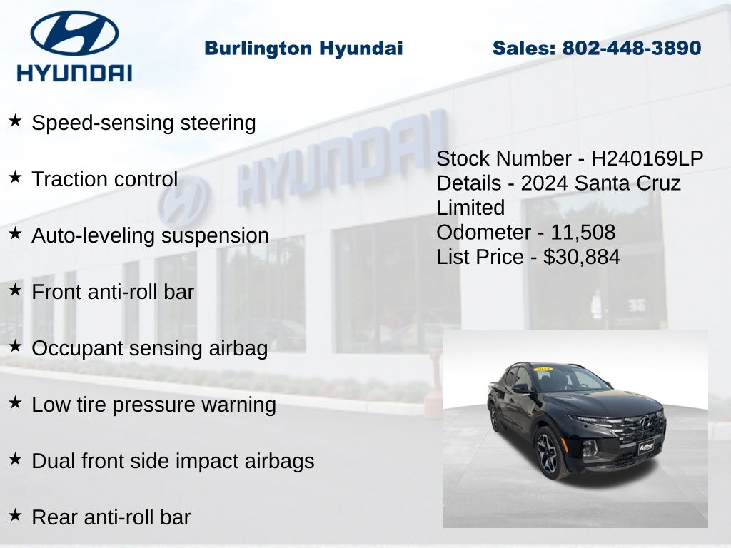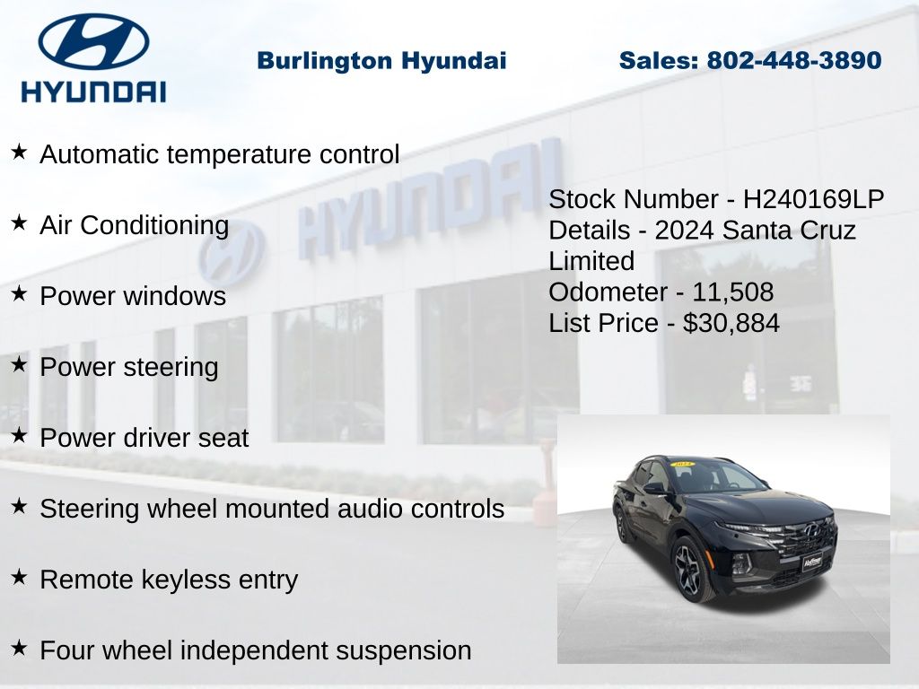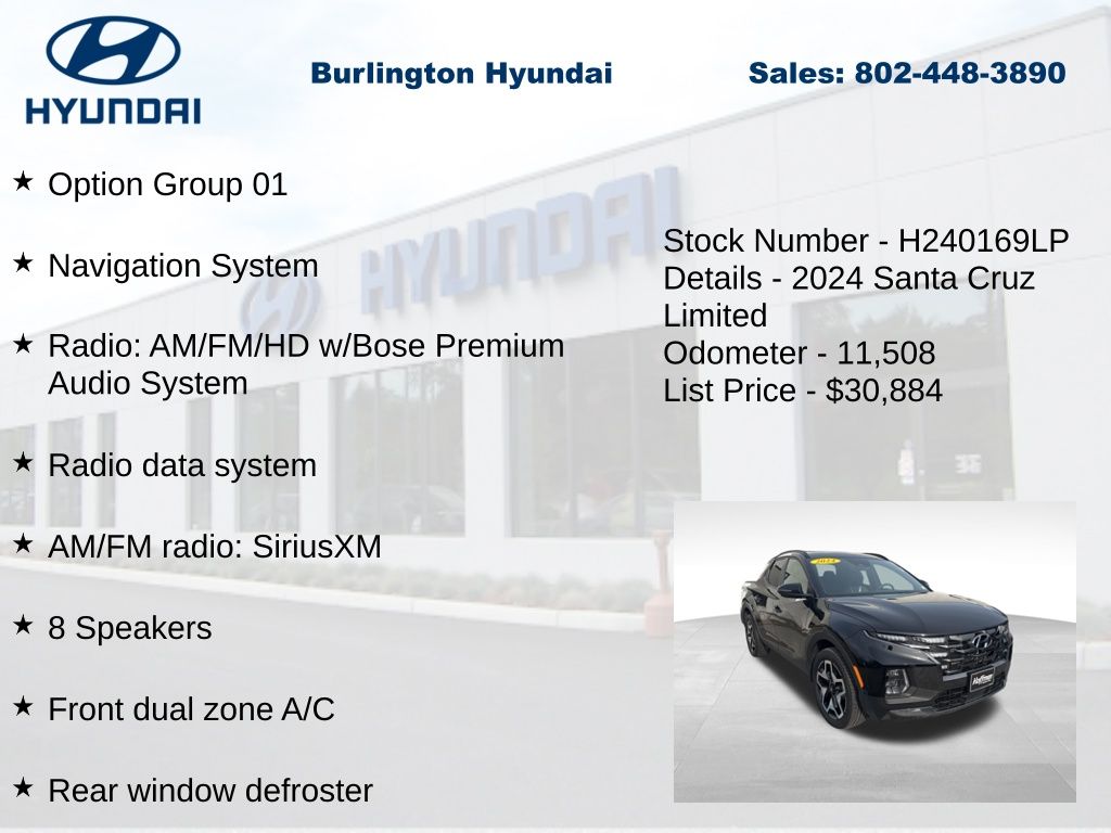 New Price! Certified. 2024 Santa Cruz Limited 2.5L I4 AWD 19/27 City/Highway MPG Priced below KBB Fair Purchase Price! Odometer is 2354 miles below market average! CARFAX One-Owner. Clean CARFAX.