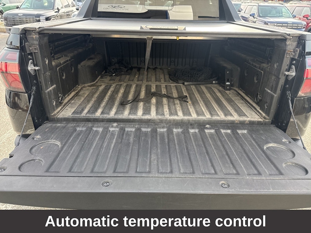 3.316 Axle Ratio, 4-Wheel Disc Brakes, 8 Speakers, ABS brakes, Air Conditioning, Alloy wheels, AM/FM radio: SiriusXM, Apple CarPlay & Android Auto, Auto High-beam Headlights, Auto-dimming Rear-View mirror, Auto-leveling suspension, Automatic temperature control, Bed Cargo Net, Brake assist, Bumpers: body-color, Carpeted Floor Mats, Delay-off headlights, Driver door bin, Driver vanity mirror, Dual front impact airbags, Dual front side impact airbags, Electronic Stability Control, Emergency communication system: Bluelink+, Exterior Parking Camera Rear, First Aid Kit, Four wheel independent suspension, Front anti-roll bar, Front Bucket Seats, Front Center Armrest, Front dual zone A/C, Front reading lights, Fully automatic headlights, Garage door transmitter: HomeLink, Heated & Ventilated Front Bucket Seats, Heated door mirrors, Heated front seats, Heated steering wheel, Illuminated entry, Leather Shift Knob, Leather steering wheel, Leather-Trimmed Seats, Low tire pressure warning, Mud Guards, Navigation System, Occupant sensing airbag, Option Group 01, Outside temperature display, Overhead airbag, Overhead console, Panic alarm, Passenger door bin, Passenger vanity mirror, Power door mirrors, Power driver seat, Power moonroof, Power steering, Power windows, Radio data system, Radio: AM/FM/HD w/Bose Premium Audio System, Rain sensing wipers, Rear anti-roll bar, Rear side impact airbag, Rear step bumper, Rear window defroster, Remote keyless entry, Security system, Sliding Bed Divider, Speed control, Speed-sensing steering, Split folding rear seat, Spoiler, Steering wheel mounted audio controls, Tachometer, Telescoping steering wheel, Tilt steering wheel, Traction control, Trip computer, Turn signal indicator mirrors, Variably intermittent wipers, Ventilated front seats, Wheel Locks, Wheels: 20" x 7.5J Alloy.
