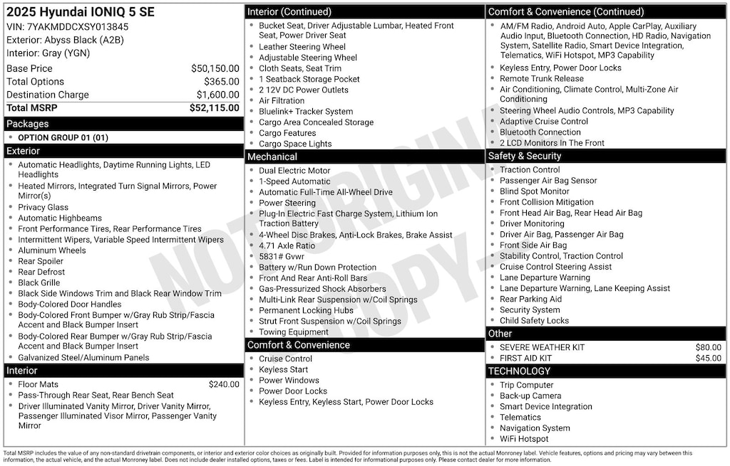 2025 IONIQ 5 SE Electric Motor AWD 116/96 City/Highway MPG Clean CARFAX.