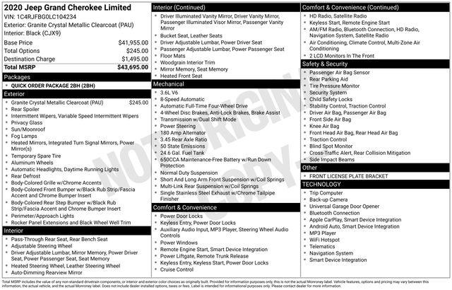 2020 Jeep Grand Cherokee Limited Clean CARFAX.