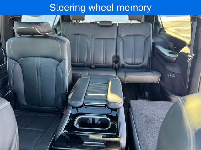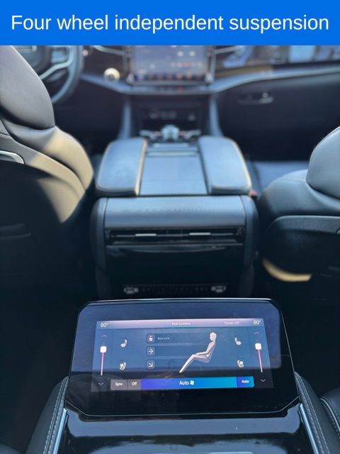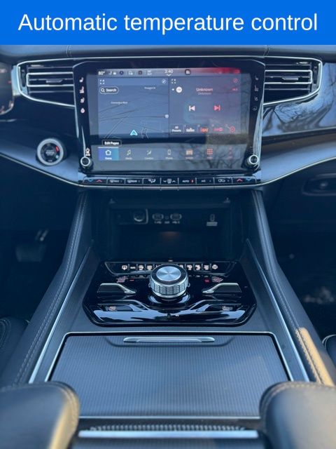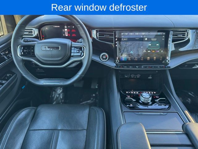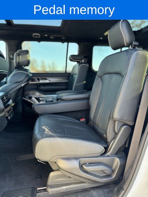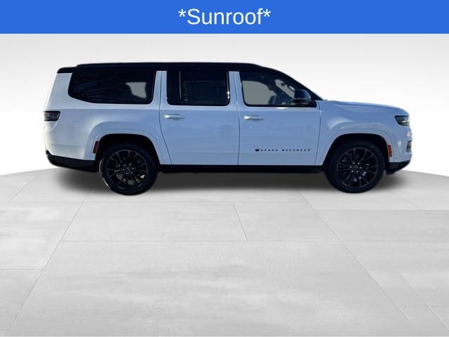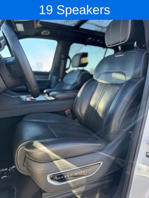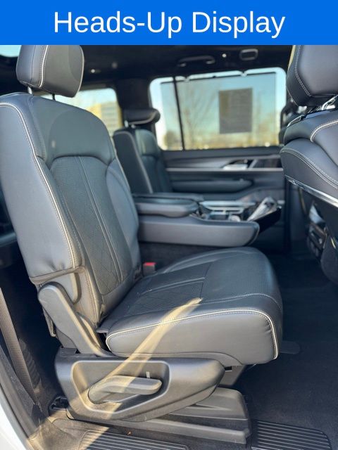 *Sunroof*, *Heated Seats*, *3rd Row*, Grand Wagoneer L Series II Obsidian, Bright White Clearcoat, 19 Speakers, 23 Speaker McIntosh Reference Audio System, 3rd row seats: bench, 4-Wheel Disc Brakes, ABS brakes, Adjustable pedals, Adjustable Roof Rail Crossbars, Air Conditioning, AM/FM radio: SiriusXM with 360L, Anti-whiplash front head restraints, Apple CarPlay/Android Auto, Audio memory, Auto High-beam Headlights, Auto-dimming door mirrors, Auto-dimming Rear-View mirror, Auto-leveling suspension, Automatic temperature control, Black Interior Accents, Black Roof, Brake assist, Bumpers: body-color, Compass, Delay-off headlights, Driver door bin, Driver vanity mirror, Driver's Seat Mounted Armrest, Dual front impact airbags, Dual front side impact airbags, Electronic Stability Control, Emergency communication system, Four wheel independent suspension, Front anti-roll bar, Front Bucket Seats, Front Console Cooler, Front dual zone A/C, Front fog lights, Front Passenger Interactive Display, Front reading lights, Fully automatic headlights, Garage door transmitter, Genuine wood console insert, Genuine wood dashboard insert, Genuine wood door panel insert, Gloss Black Upper & Lower DLO Molding, Heads-Up Display, Heated door mirrors, Heated front seats, Heated rear seats, Illuminated entry, Knee airbag, Leather steering wheel, Leather Trimmed Bucket Seats, Low tire pressure warning, Memory seat, Normal Duty Suspension, Obsidian Appearance Package, Occupant sensing airbag, Outside temperature display, Overhead airbag, Overhead console, Panic alarm, Passenger door bin, Passenger seat mounted armrest, Passenger vanity mirror, Pedal memory, Piano Black Exterior Accents, Power adjustable front head restraints, Power door mirrors, Power driver seat, Power Liftgate, Power moonroof, Power passenger seat, Power steering, Power windows, Quick Order Package 28T Obsidian, Radio data system, Radio: Uconnect 5 Nav w/12.0" Display, Rain sensing wipers, Rear air conditioning, Rear anti-roll bar, Rear dual zone A/C, Rear reading lights, Rear seat center armrest, Rear window defroster, Rear window wiper, Rearview Autodim Digital Display Mirror, Reclining 3rd row seat, Remote keyless entry, Security system, Speed control, Speed-sensing steering, Speed-Sensitive Wipers, Split folding rear seat, Steering wheel memory, Steering wheel mounted audio controls, Tachometer, Telescoping steering wheel, Tilt steering wheel, Traction control, Trip computer, Turn signal indicator mirrors, Two Tone Paint Group, Variably intermittent wipers, Ventilated front seats, Ventilated Rear Seats, Voltmeter, Wheels: 22" x 9.0" Tinted Polished w/Black Insert.