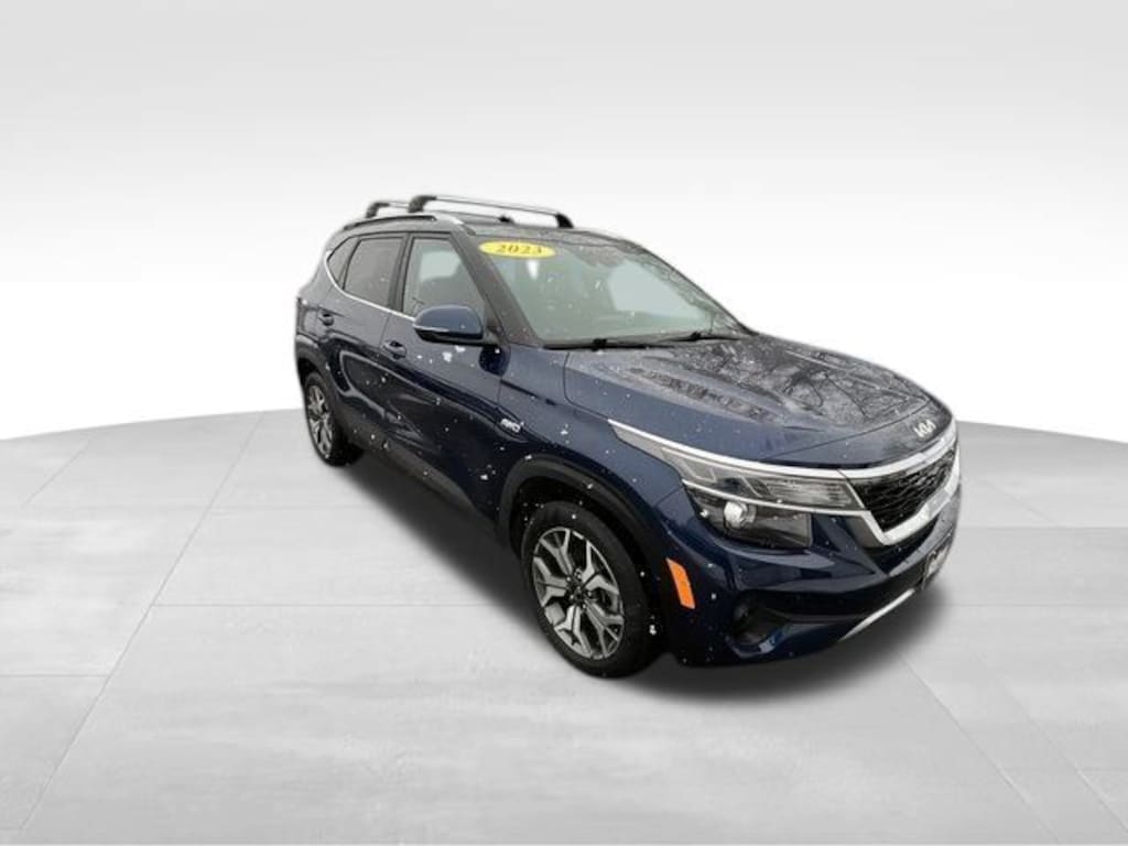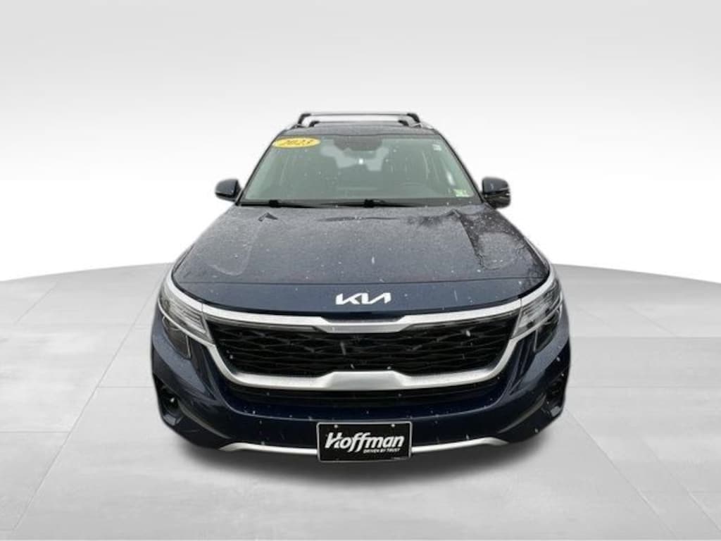 Clean CARFAX. Kia Seltos EX 2023 4-Wheel Disc Brakes, ABS brakes, Air Conditioning, Alloy wheels, Auto High-beam Headlights, Automatic temperature control, Brake assist, Delay-off headlights, Driver vanity mirror, Dual front impact airbags, Dual front side impact airbags, Electronic Stability Control, Emergency communication system: 911 Connect, Exterior Parking Camera Rear, Four wheel independent suspension, Front fog lights, Front reading lights, Fully automatic headlights, Heated door mirrors, Heated Front Bucket Seats, Illuminated entry, Leather Shift Knob, Low tire pressure warning, Navigation System, Occupant sensing airbag, Outside temperature display, Overhead airbag, Overhead console, Panic alarm, Passenger vanity mirror, Power door mirrors, Power driver seat, Power moonroof, Power steering, Power windows, Radio: AM/FM/MP3 Display Audio w/Navigation, Rear seat center armrest, Rear window defroster, Rear window wiper, Remote keyless entry, Sofino Premium Leatherette Seat Trim, Speed control, Speed-sensing steering, Split folding rear seat, Steering wheel mounted audio controls, Tachometer, Telescoping steering wheel, Tilt steering wheel, Traction control, Trip computer, Turn signal indicator mirrors, Variably intermittent wipers. Odometer is 28263 miles below market average!