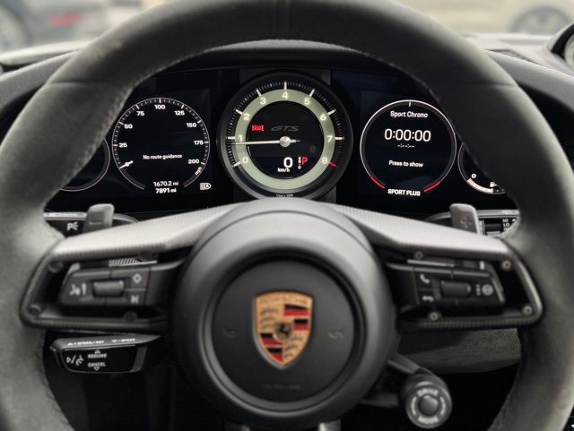 CLEAN CAR FAX... NO ACCIDENTS, HOFFMAN NEW CAR TRADE, Rear Seat Delete, Porsche Dynamic Chassis Control (PDCC), Illuminated Lateral Gills on Taillights, 4-Way Sport Seats Plus, 4-Wheel Disc Brakes, 8 Speakers, Adaptive suspension, Air Conditioning, Alloy wheels, Ambient Lighting, Auto High-beam Headlights, Auto-dimming door mirrors, Auto-dimming Rear-View mirror, Automatic temperature control, BOSE Surround Sound System, Brake assist, Bumpers: body-color, Carbon Fiber Roof, Center Console Lid in Race-Tex w/Porsche Crest, Central Tachometer in White, Delay-off headlights, Driver door bin, Driver vanity mirror, Dual front impact airbags, Dual front side impact airbags, Electronic Stability Control, Exclusive Design Fuel Cap, Extended Range 23.7 Gallon Fuel Tank, Four wheel independent suspension, Front anti-roll bar, Front Bucket Seats, Front Center Armrest, Front dual zone A/C, Front reading lights, Full Bucket Seats, Fully automatic headlights, Garage door transmitter: HomeLink, Heated door mirrors, Heated front and rear seats, Htd GT Spt Steering Whl w/Matte Carbon Fiber Trim, Illuminated entry, Interior Trim Inlays in Matte Carbon Fiber, Lane Change Assist (LCA), Leather/Race-Tex Seat Trim, LED-Matrix Design Headlights in Black w/PDLS+, Lightweight & Noise Insulated Glass, Lightweight Package i.c.w. Full Bucket Seats, Low tire pressure warning, Navigation system: Porsche Communication Management (PCM), Occupant sensing airbag, Outside temperature display, Overhead airbag, Overhead console, Park Assist (Front & Rear) Incl. Surround View, Passenger door bin, Passenger vanity mirror, Porsche Ceramic Composite Brake (PCCB), Porsche Communication Management, Power door mirrors, Power driver seat, Power Folding Exterior Mirrors, Power passenger seat, Power steering Plus, Power windows, Premium Package, Preparation for Front & Rear Porsche Dashcam, Radio data system, Rain sensing wipers, Rear anti-roll bar, Rear Axle Steering, Rear fog lights, Rear window defroster, Remote keyless entry, Roof Lining in Race-Tex, Security system, Sound Package Plus, Speed control, Split folding rear seat, Spoiler, Sport steering wheel, Steering wheel mounted audio controls, Storage Package, Surround View, Tachometer, Telescoping steering wheel, Tilt steering wheel, Traction control, Trip computer, Variably intermittent wipers, Wheels: 20" Fr/21" Rr 911 Turbo S in Satin Black. Clean CARFAX. Chalk 2024 Porsche 911 Carrera GTS RWD 8-Speed Porsche Doppelkupplung (PDK) 3.0L H6 Turbocharged DOHC 24V LEV3-ULEV70 473hp