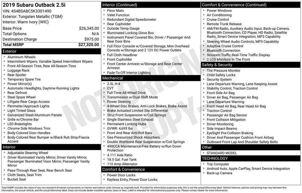 Used 2019 SubaruOutback 2.5i