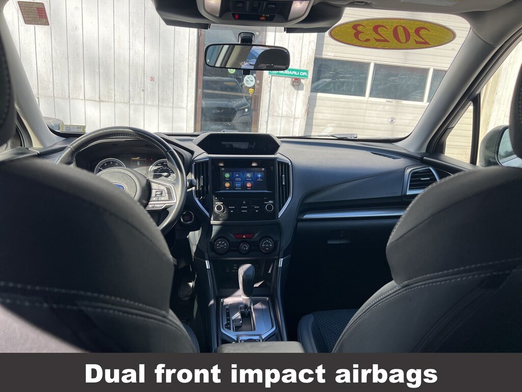 CARFAX One-Owner. Clean CARFAX. Subaru Forester Premium 2023 4-Wheel Disc Brakes, ABS brakes, Air Conditioning, Alloy wheels, Anti-whiplash front head restraints, Auto High-beam Headlights, Automatic temperature control, Brake assist, CD player, Driver vanity mirror, Dual front impact airbags, Dual front side impact airbags, Electronic Stability Control, Emergency communication system: STARLINK Safety and Security (Subscription Required), Exterior Parking Camera Rear, Four wheel independent suspension, Front fog lights, Front reading lights, Fully automatic headlights, Heated door mirrors, Heated Front Bucket Seats, Illuminated entry, Knee airbag, Low tire pressure warning, Occupant sensing airbag, Outside temperature display, Overhead airbag, Panic alarm, Passenger vanity mirror, Power door mirrors, Power driver seat, Power moonroof: Panoramic, Power steering, Power windows, Radio: Subaru Starlink 6.5" Multimedia Plus System, Rear window defroster, Rear window wiper, Remote keyless entry, Speed control, Speed-sensing steering, Split folding rear seat, STARLINK/Apple CarPlay/Android Auto, Steering wheel mounted audio controls, Tachometer, Telescoping steering wheel, Tilt steering wheel, Traction control, Trip computer, Variably intermittent wipers.