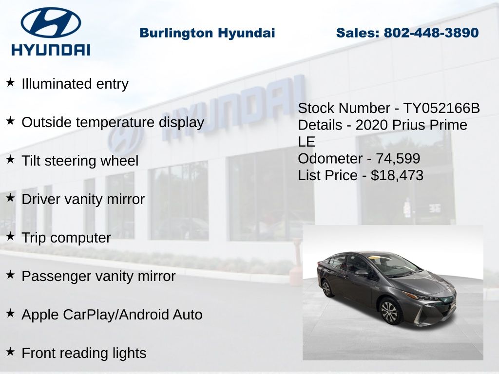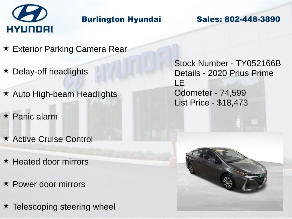New Price! 2020 Prius Prime LE 1.8L 4-Cylinder DOHC 16V VVT-i FWD CARFAX One-Owner. Clean CARFAX.