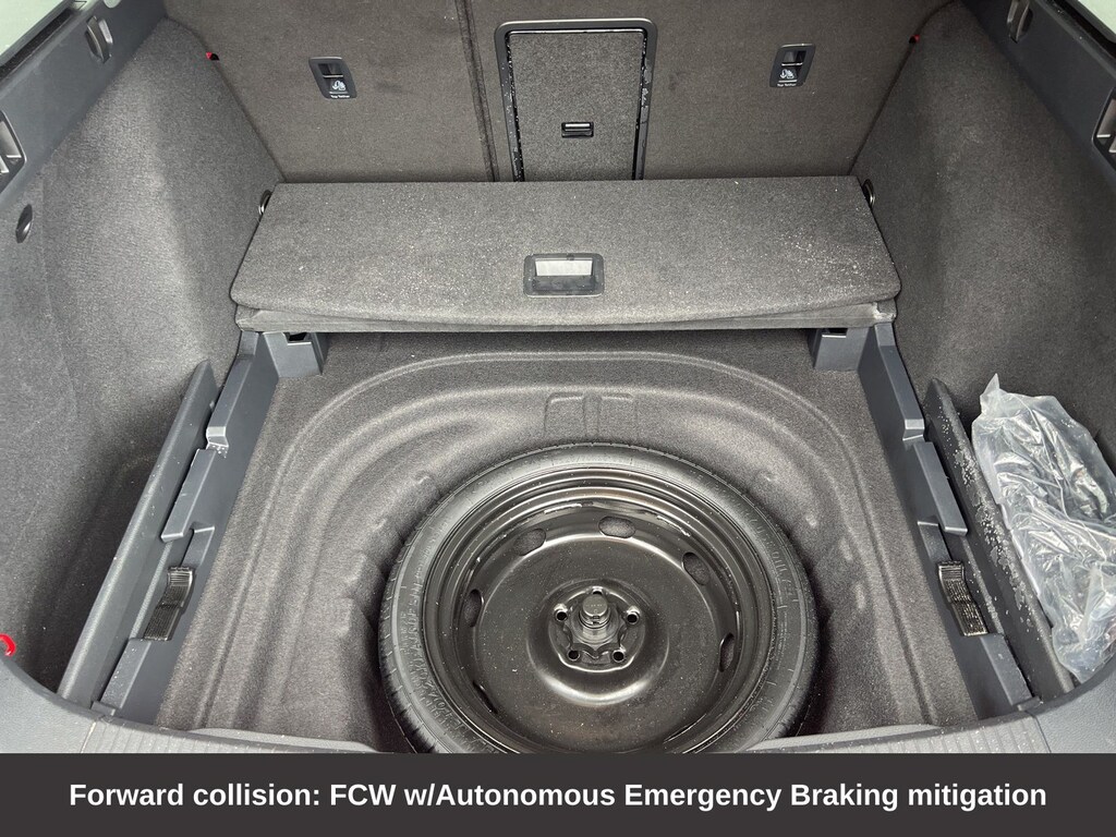 4-Wheel Disc Brakes, ABS brakes, Air Conditioning, Alloy wheels, Anti-whiplash front head restraints, Brake assist, Compass, Delay-off headlights, Driver vanity mirror, Dual front impact airbags, Dual front side impact airbags, Electronic Stability Control, Exterior Parking Camera Rear, Forward collision: FCW w/Autonomous Emergency Braking mitigation, Four wheel independent suspension, Front Bucket Seats, Front fog lights, Front reading lights, Fully automatic headlights, Heated door mirrors, Heated front seats, Illuminated entry, Leather Shift Knob, Low tire pressure warning, Occupant sensing airbag, Outside temperature display, Overhead airbag, Panic alarm, Passenger vanity mirror, Perforated V-Tex Leatherette Seating Surfaces, Power door mirrors, Power driver seat, Power passenger seat, Power steering, Power windows, Radio data system, Rain sensing wipers, Rear reading lights, Rear window defroster, Rear window wiper, Remote keyless entry, Speed control, Speed-sensing steering, Speed-Sensitive Wipers, Split folding rear seat, Steering wheel mounted audio controls, Tachometer, Telescoping steering wheel, Tilt steering wheel, Traction control, Trip computer, Turn signal indicator mirrors, Variably intermittent wipers.