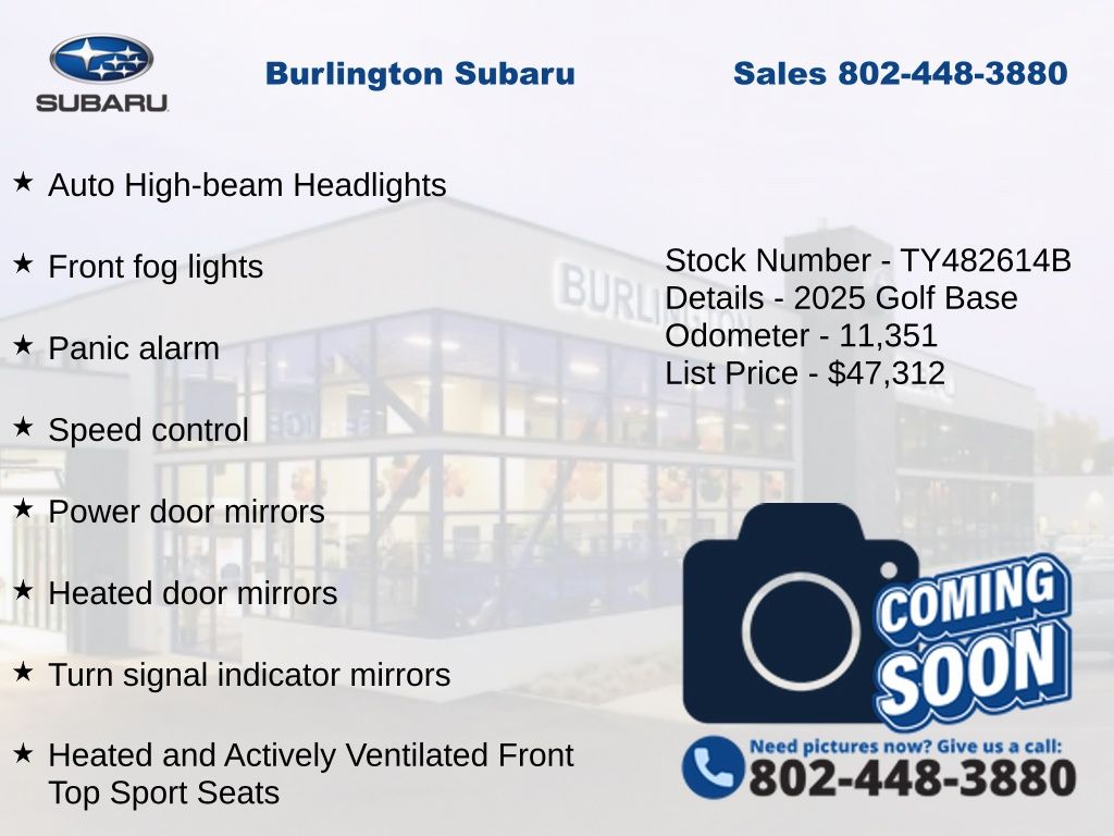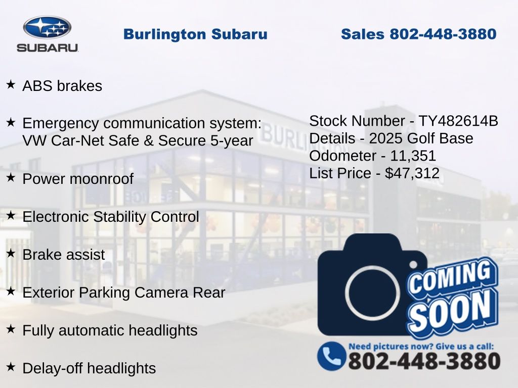 CARFAX One-Owner. Clean CARFAX. Volkswagen Golf R 2.0T 2025 4-Wheel Disc Brakes, ABS brakes, Adaptive suspension, Air Conditioning, Alloy wheels, Auto High-beam Headlights, Auto-dimming Rear-View mirror, Automatic temperature control, Brake assist, Compass, Delay-off headlights, Driver door bin, Driver vanity mirror, Dual front impact airbags, Dual front side impact airbags, Electronic Stability Control, Emergency communication system: VW Car-Net Safe & Secure 5-year, Exterior Parking Camera Rear, Four wheel independent suspension, Front Bucket Seats, Front dual zone A/C, Front fog lights, Front reading lights, Fully automatic headlights, Heads-Up Display, Heated and Actively Ventilated Front Top Sport Seats, Heated door mirrors, Heated front seats, Heated steering wheel, Illuminated entry, Leather steering wheel, Low tire pressure warning, Memory seat, Navigation System, Occupant sensing airbag, Outside temperature display, Overhead airbag, Overhead console, Panic alarm, Passenger vanity mirror, Perforated Nappa Leather Seating Surfaces, Power door mirrors, Power driver seat, Power moonroof, Power passenger seat, Power steering, Power windows, Radio: MIB3 Discover Pro AM/FM/HD, Rain sensing wipers, Rear air conditioning, Rear reading lights, Rear seat center armrest, Rear window defroster, Rear window wiper, Remote keyless entry, Speed control, Speed-sensing steering, Speed-Sensitive Wipers, Split folding rear seat, Sport steering wheel, Steering wheel mounted audio controls, Tachometer, Telescoping steering wheel, Tilt steering wheel, Traction control, Trip computer, Turn signal indicator mirrors, Variably intermittent wipers, Ventilated front seats.
